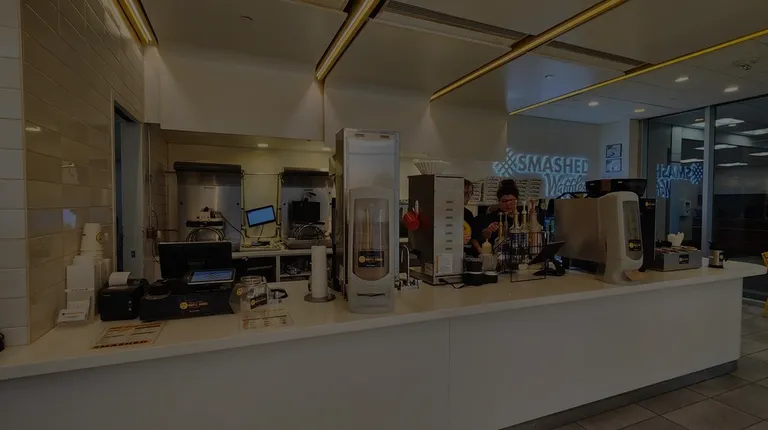 Delicious and quick, the perfect breakfast! I really enjoyed everything about The Smashed Waffle Company.We got coffees, breakfast sandwiches, and a few different waffles to try. I love a sweet and savory option for my meal and the iced coffee was a cherry on top. Everything we got was absolutely delicious! We ordered the John Lemon, Swirly Sin, and Cereal Thriller for our sweet waffles and the Chatty Patty for our sandwiches. Really cute space with the vibrant yellow all over and very modern. Very kind staff and they were super quick! We came on Monday morning and it was fairly busy but we didn't wait long. It's a smaller space but they have chairs and tables to sit for a few. The pizza box style to go box was really cool and practical! We were visiting from out of town, but I would definitely come back when we are in town again and would recommend everyone to stop in and try it out!
