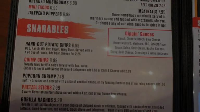 I love the Monkeys salads. They have the most fresh chicken salad with vegetables around. The wings and quesadillas are good too! We order from their business for take out at my business and have never had a bad meal.