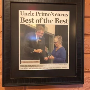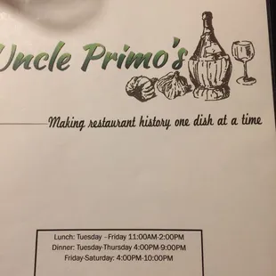 This place is hopping on a Friday night! Be sure to call ahead for reservations. Service was quick and efficient. Complimentary salad was great and so were the Chicken Parm and Lasagna. Highly recommend Uncle Primo's if you are in the area!