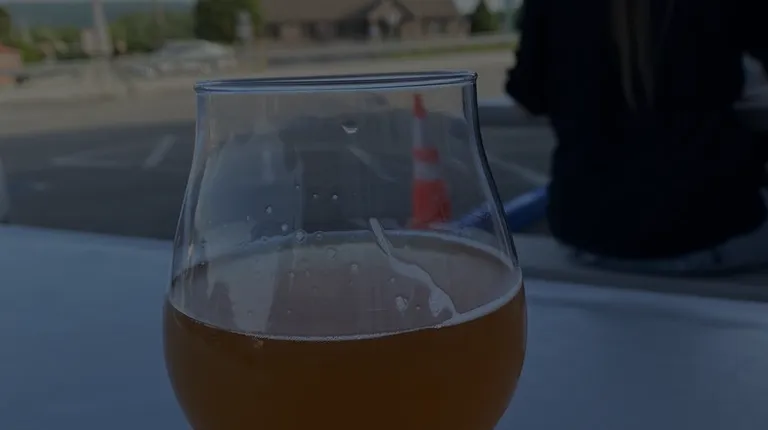 a glass of beer on a counter