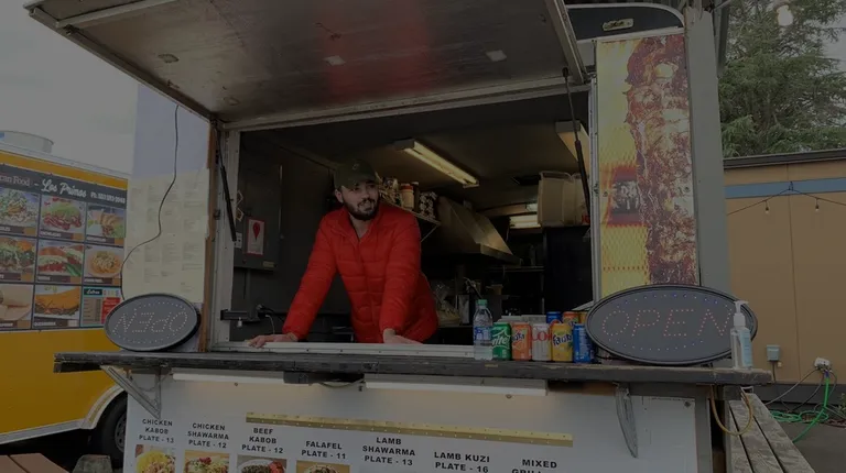 Chicken Shawarma Wrap: Tomato, zesty pickle, garlic sauce, lettuce, a dash of hot sauce wrapped in a tortilla and grilled until golden.