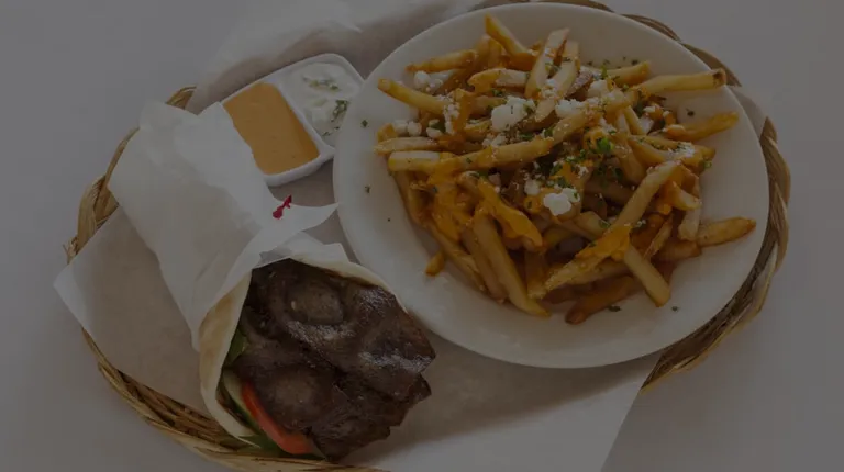 $7.95french fries toped with our house garlic sauce and feta cheese
