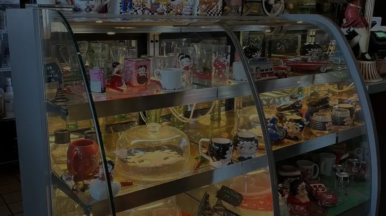Vintage Betty Boop statuettes adorn the overhang above prep bar. Betty Boop lovers will be impressed with the memorabilia here!