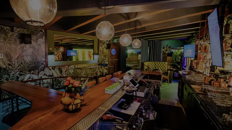the entrance to a bar