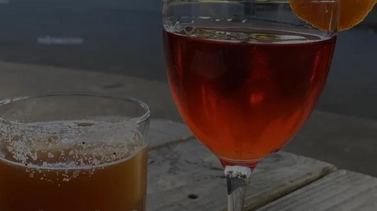 two cocktails on a wooden table