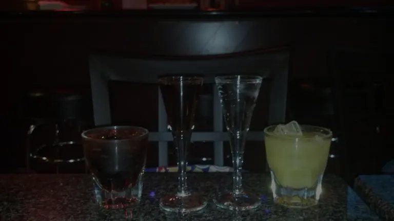 a drink in a glass on a table