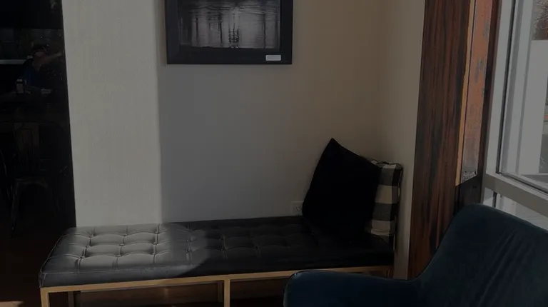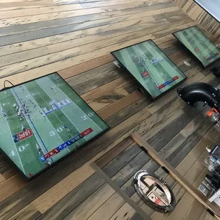 Photo of the bar, we sat near the windows. Chairs are uncomfy, but there are bench seats around the walls.