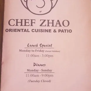 a menu for a restaurant