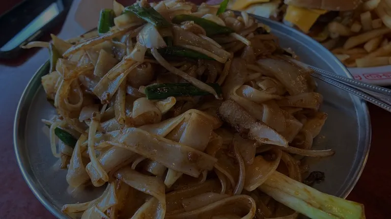 a plate of stir fried food