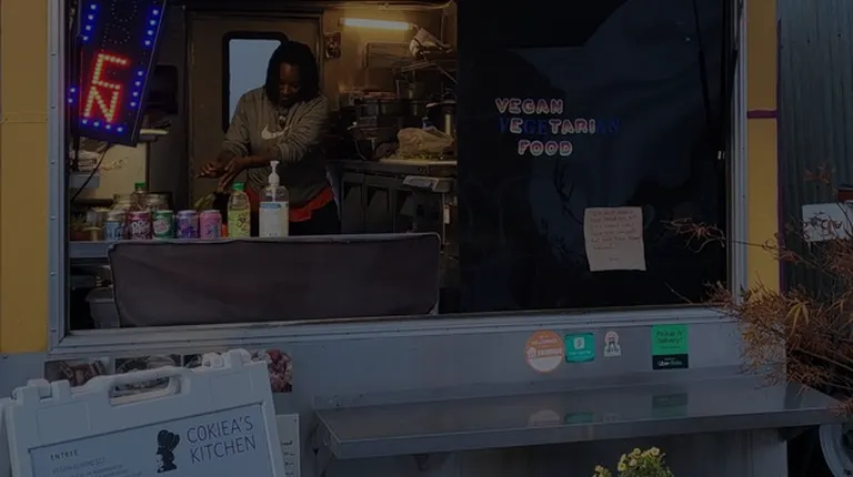 All the things! Jackfruit tacos, beans and rice, Mac N Cheeze, sweet potato pie