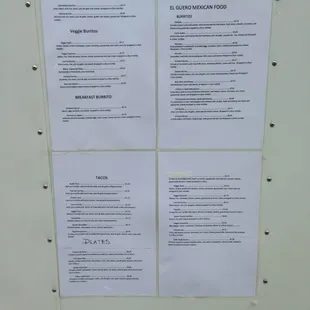 a menu for breakfast burrito and combinations