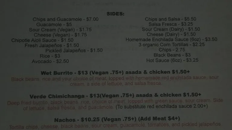 I was really excited to try this place out as they offered Vegan cheez. I ordered nachos with beef and guac. Let's start out with the base, the corn tortilla chips were too thin and could not support the toppings. Yes, they used vegan cheez, but there was barely anything on my nachos, didn't even cover 1/3 of the order. They used ground beef vs. carne asada (steak), it was okay. The guac was good.The person who took my order was extremely helpful and friendly. The prices are very reasonable. Street parking was easy to find.