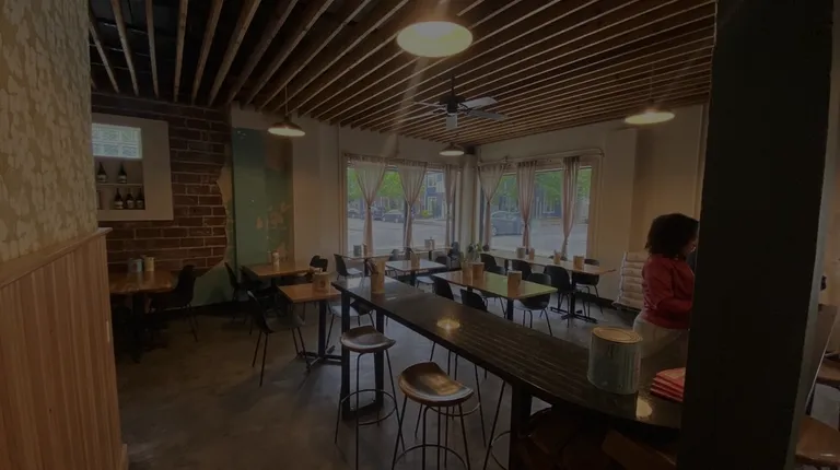 Simple yet nice space. Limited outdoor seating. Inside seating has 3-4 tables that accommodate 4 or more, while the remaining are for two people. Bar seating available.Good pies. Solid ingredients. They only make @ 70 pies a day so maybe give a call before you go if you need a lot of pies. Pies are 4 slices each.