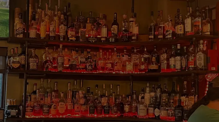 A small restaurant bar with a stage for music performance. A corner building with the entrance on the corner. Rustic space inside with lots of wood and repurposed items like a whisky barrel table. They have a lot of whiskey behind the bar and a handful of beers on tap and some additional beverages and beers in a refrigerated case that you can select and have the bartender put in a glass for you. I haven't tried the food yet, but it looks pretty good with a variety of items including steak. The music was free on the night I went. Not sure if that's always the case.