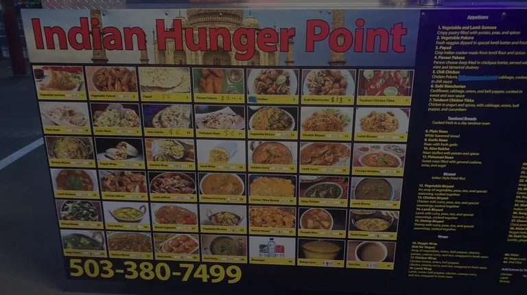 Indian Hunger Point has moved to the Flipside Bar & Food Carts on 9320 SE Woodstock Blvd Portland, OR 97266 https://www.flipsidebarpdx.com/ We always order the Saag Paneer and it is lovely. Comes with Basmati which is wonderful by itself!Friendly folk making yummy food?What could better?