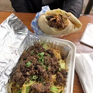 bulgogi burrito with added kimchi. making it beef and adding kimchi cost extra money which i don't understand. otherwise it was pretty good