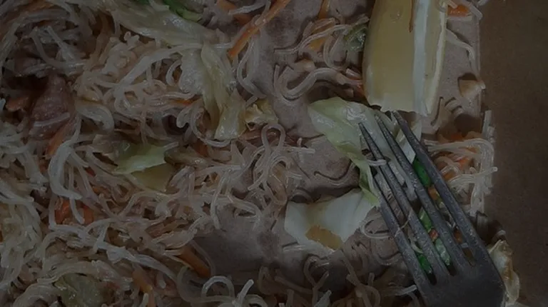 Pork Adobo served with 3pcs. lumpia Shanghai, Pancit, steamed white rice & sweet chili sauce.