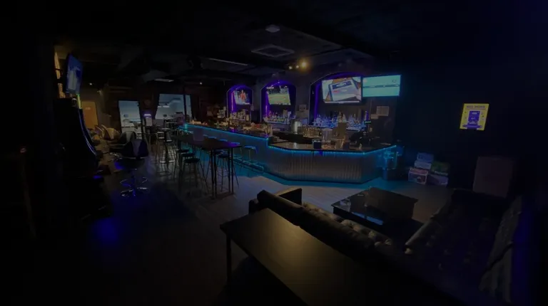 a bar with neon lights