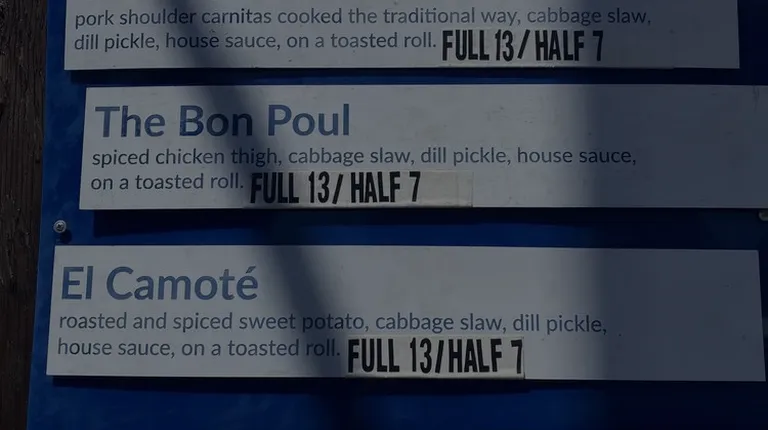 I live a few minutes away and have driven past but today decided to call in an order on my lunch. The person who answered the phone was friendly and walked me through the menu. I hate having to choose just one entree, so being able to do a half and half gave me a chance to try two items for $15. They were out of the carnitas one, which was my first choice but I chose The Vant and The Bon Poul. I requested heavy sauce bc #SaucekweenWhen I tell you that this was one of the best sandwiches I've had in.. idk my life? Great bread, the meat is phenomenal and I love the ingredient choices for each sandwich. I took a few bites before driving back to work and had to stop myself from trying to eat more at a red light haha Definitely recommend this ne Alberta street food cart and will be back with my husband soon to try the carnitas one.