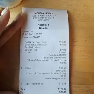 Norma Jean, Let's talk about it!!!Indoor/outdoor seating optionsLet start with the serve yourself water station from a bucket. Little weird, and I didn't like it as I wasn't cold, no ice.Out with the kid for dinner before her big day...... they enjoyed the Oxtails (1 jerk and 1 smoothered), collard greens mix veggie, and beans & Rice. They finished their entire plate!!!I asked for chicken and shrimp Cajun plate. Welp, no chicken available, so I was offered brisket. Asked for honey butter cornbread, yup not available. Before I ordered, I asked for the Cajun sauce to be removed. I was advised it has little kick but not spicy. Let's just say it was a dish I couldn't enjoy or eat. I ate 2 noodles and needed an entire cup of water. I ate the shrimp and a few penne pasta noodles and a few cubes of meat.I ordered the fried shrimp from the picture on Googlereview. Let me just say what I got served looks as if the grease needed to be changed. They came out grayish, and I know it wasn't seasoning. They saw it didn't look right but served it to me anyway. I would not recommend it. I wasn't impressed with the food. The vibe was off. I didn't feel welcomed when we entered the location. And we were the ONLY paying folks seated in the restaurant. Total disappointment!The restroom are shared with other businesses attached to the location at the rear.