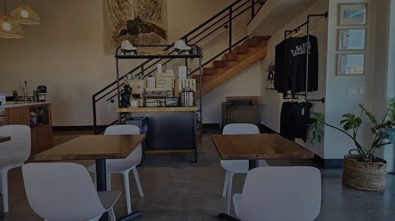 Wall art, flavor cart, and stairs to upstairs sitting area