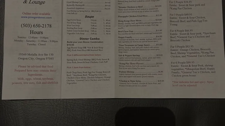 We've been going there regularly for several years and I just realized I've never given them the kudos they deserve. I'm usually pretty picky when it comes to restaurants.Their Hot & Sour soup is to die for. For me, if a Chinese restaurant doesn't have this on their menu, I won't even go there. They have the best, and it's ALWAYS steamy hot and, for takeout, in a solid container and very tasty.Their fried shrimp is always light, and airy... a little greasy at times, but I don't know how that's to be avoided for deep fried shrimp. They always taste fresh.All of the menu items that we've tried over the years have been good. The meats are always fresh and tender, the vegetables fresh, and the sauces are all good. We always order take out so I can't really say how the dining service is, but we've always been satisfied. Prices are reasonable, although they have been going up slightly but fairly steadily over the recent past. In our opinion, they are the best of the few here in Oregon City. I Highly recommend.