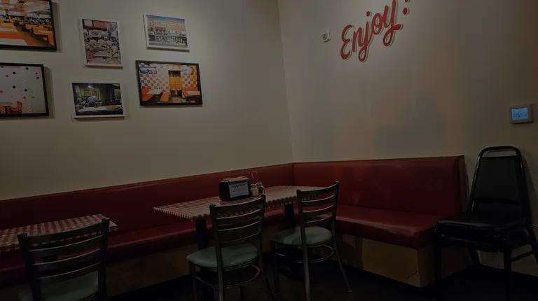 Nothing to write home about. I carefully gave my order. My husband got two pieces of pizza, and I waited for mine. When I finally realized one of his was mine, it was the wrong pizza. I let the server know that it was the wrong and they weren't happy at all. I guess they weren't paying attention. ANYWAY I like thin and crispy pizza, but not when it's so thin that it doesn't stay up when you try to eat that, and it flops over.They have pizza by the slice and the option to buy a whole pizza. We got it by the slice and it came out fast. During a busy time during the day, you might have to wait for a table to be available.