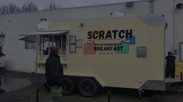 Scratch breakfast food truck has very friendly staff. There are a good amount of tables outside plus the taproom opens up a little later. They have bathrooms inside if it's open.This is hands down my favorite breakfast in the area, including Portland. They have a small, handcrafted menu with a few specials. Love that most items are made from scratch!