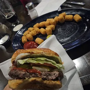We ordered through DoorDash:Classic burger was big and pretty tasty. Chicken strips are huge and pretty good. The breakfast burrito was spot on. The country gravy wasn't terrible...was missing something, kind of bland. The fries were crispy and very yummy, and you can never go wrong with tots.