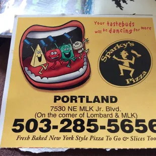a sign for sparky's pizza