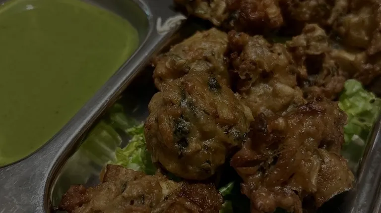 Deep fried fritters of boneless chicken coated with a spiced chickpea flour batter (Gluten Free)