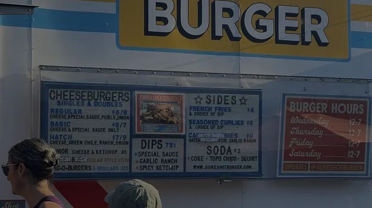 Still happily plowing my way through all the smash burgers out there, I ended up at Sure Shot on Saturday around 12:30. There wasn't a line at the truck ordering, but there were quite a few awaiting their meals in the tent seating area. It ended up being about a 20 minute wait, but it was worth it. The burgers are slight in toppings but satisfying on flavor...and most importantly in smashness...with fabulous crispy edges and a very tasty smash sauce. We each ordered a double and shared an order of fries. My only suggestion would be to cut back on the fry salt some. But other than that, the food was great and service exceptionally friendly. Sure Shot is definitely a must-try if you enjoy a smash as much as I do.
