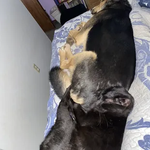 Cat laying on the dog!!!
