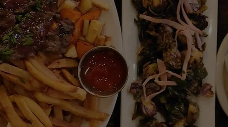Steak frites special! With fingerling potatoes and root veg. $21