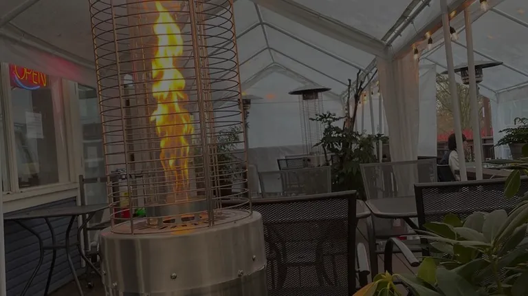 Elegant outdoor dining with heat lamps