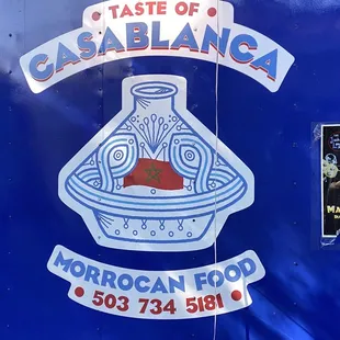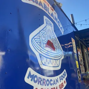 a blue food truck parked in a parking lot