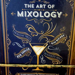 a bar with a menu and a glass of wine