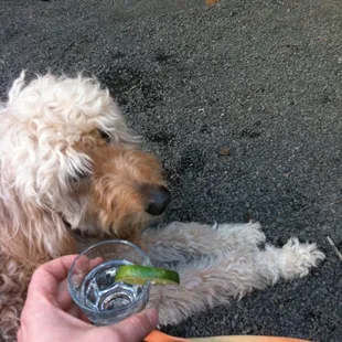 Sloppy Joe (partially eaten), Jameson on the rocks, and a kool-aid pickle of in the distance.