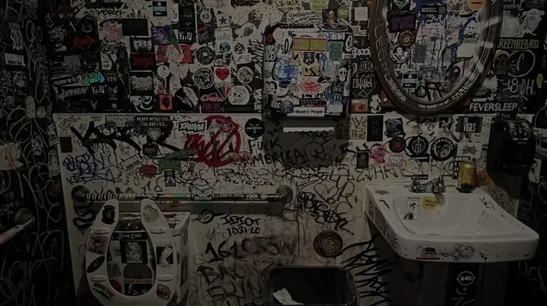 a toilet covered in stickers