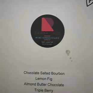 Cheese cakes (1 not as good to 10 being good) far left: Pear ginger, 4 Middle: key lime, 8 Right: chocolate cookie, 7 Behind: cake pop, 6