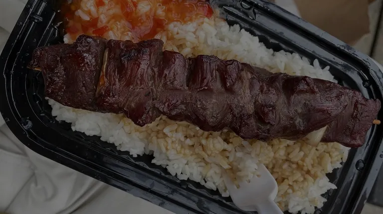 Yakiniku Bento. Beef skewer w/ rice and sweet and spicy sauce.