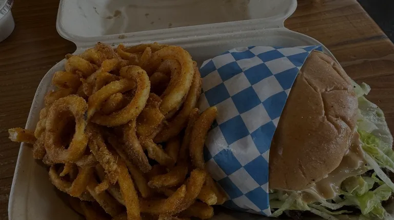 Grilled onion, American cheese, pickles, burger sauce, lettuce, and tomato.