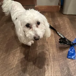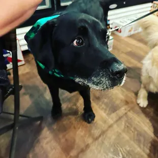 a dog sitting on the floor