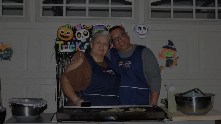 Mother ( Cuquita) and daughter, prepping to give some tacos for Halloween