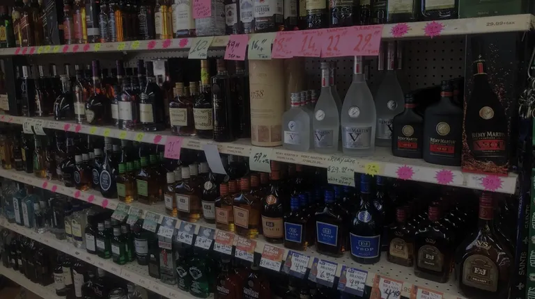 shelves of liquor in a grocery store