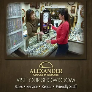 These people here at Alexander Clocks and Watches are first and foremost amazing, beautiful people! Service is outstanding, second to none! Took my Dads watch in after he passed away to see if they could restore it and they did! That watch is everything to me and I'm able to enjoy it more because of them. Next, I took in two busted watches, and without a hitch, or a doubt, they completely fixed both watches!! You want to meet fantastic people then come here, you want great service then come here, you want watches or them to fix your watch(es) then come here, you want clocks then come here!! I do not work here, but they have me for my lifetime when it comes to watches or clocks!! Thank you Alexander Clocks and Watches for allowing me to be happy with my Dads watch (R.I.P.).