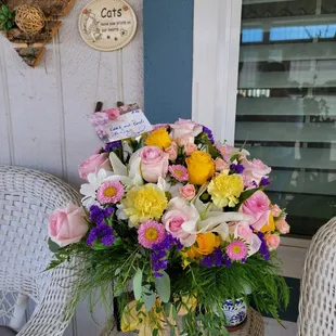 I live in WA, and wanted to send some flowers to my mom. All the commercial places were so pricey and the bouquets were not quite what I wanted. I called Alinas after finding their yelp and instagram. They do deliver and we're able to get this beautiful bouquet in hours. They sent me a photo of the bouquet and communicated through text promptly. I messed up the delivery address and they were so nice about it. My mom was so happy with the flowers and I was very happy with the service. This will be the first of many orders from Alinas! Check out the Instagram, they have so many gorgeous and different arrangements.