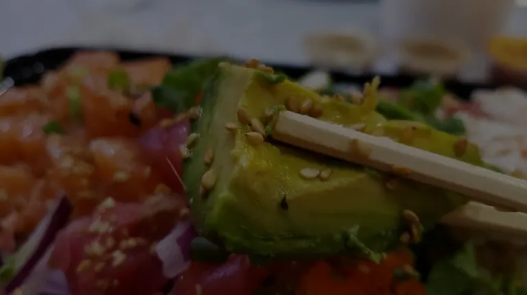 Close up 3 scoops poke bowl of goodness