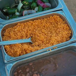 Grilled peppers and onions, rice and beans !