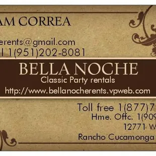 Bella Noche is amazing. Wonderful customer service and very responsive. Drop off and pick up were super easy. Thank you guys so much! I highly recommend! We will be using for future parties!